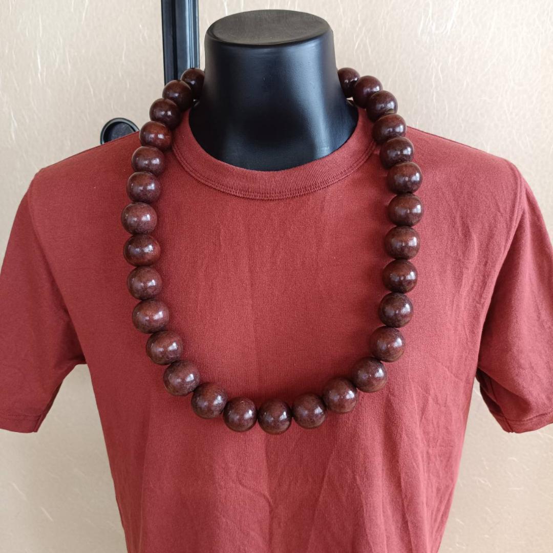 - 数珠 念珠 ネックレス 木製 茶色 法霊数珠 極太 30mm玉 全長約90cm