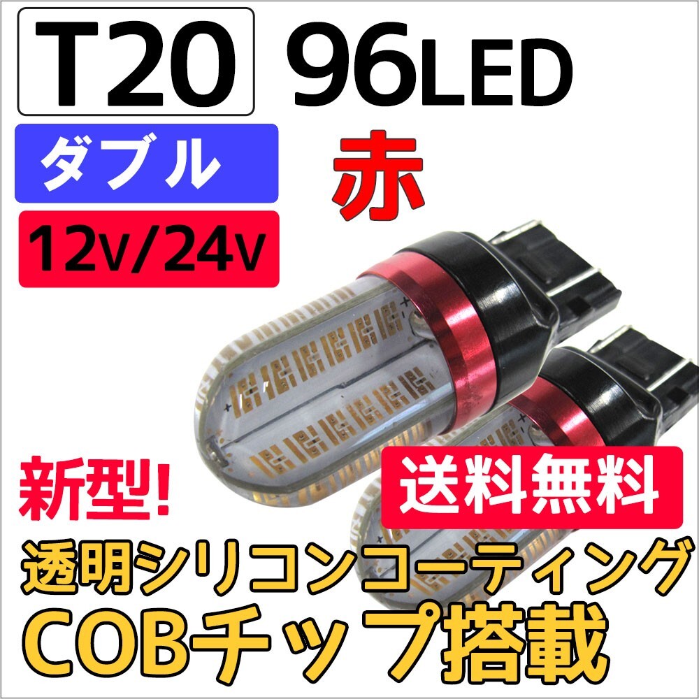 > 【互換品】12V 24V/ T20/ 96LED / COBチップ /透明シリコンコーティング /ダブル球 /赤/ 2個/ LED