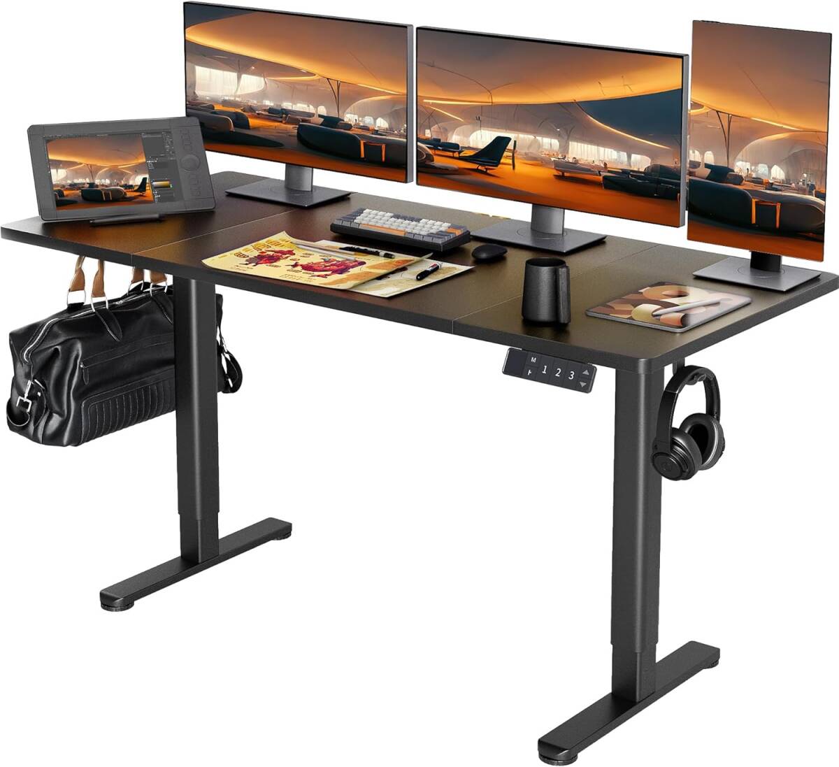 > ブラック色 幅160cm×奥行き60cm Claiks 昇降デスク 電動 スタンディングデスク 昇降式 テーブル テレワーク オフィスデスク