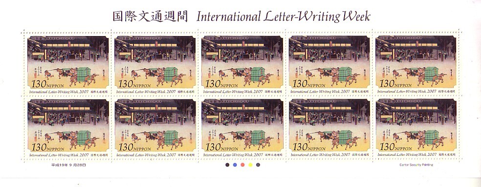 - 「国際文通週間2007 東海道五拾三次之内 草津」の記念切手です