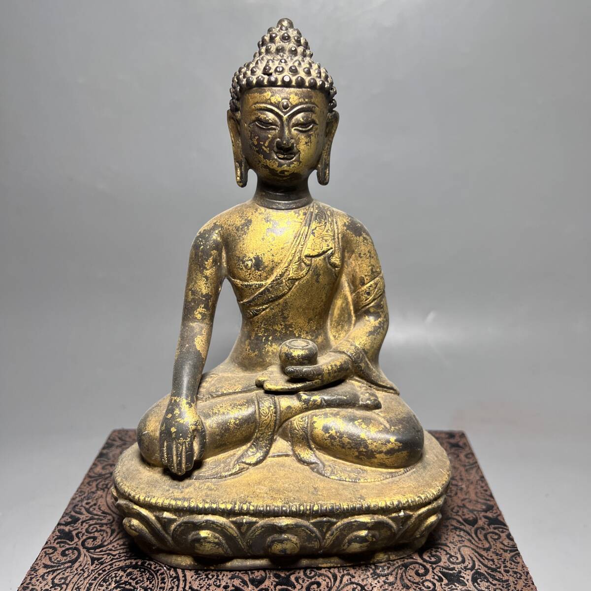 - 旧家蔵出し紫銅細作 撒真金 釋迦牟尼像 藥師仏 仏像 密教商品 供養品 極細工 置物擺件 美術品 旧家蔵出 旧家供養品