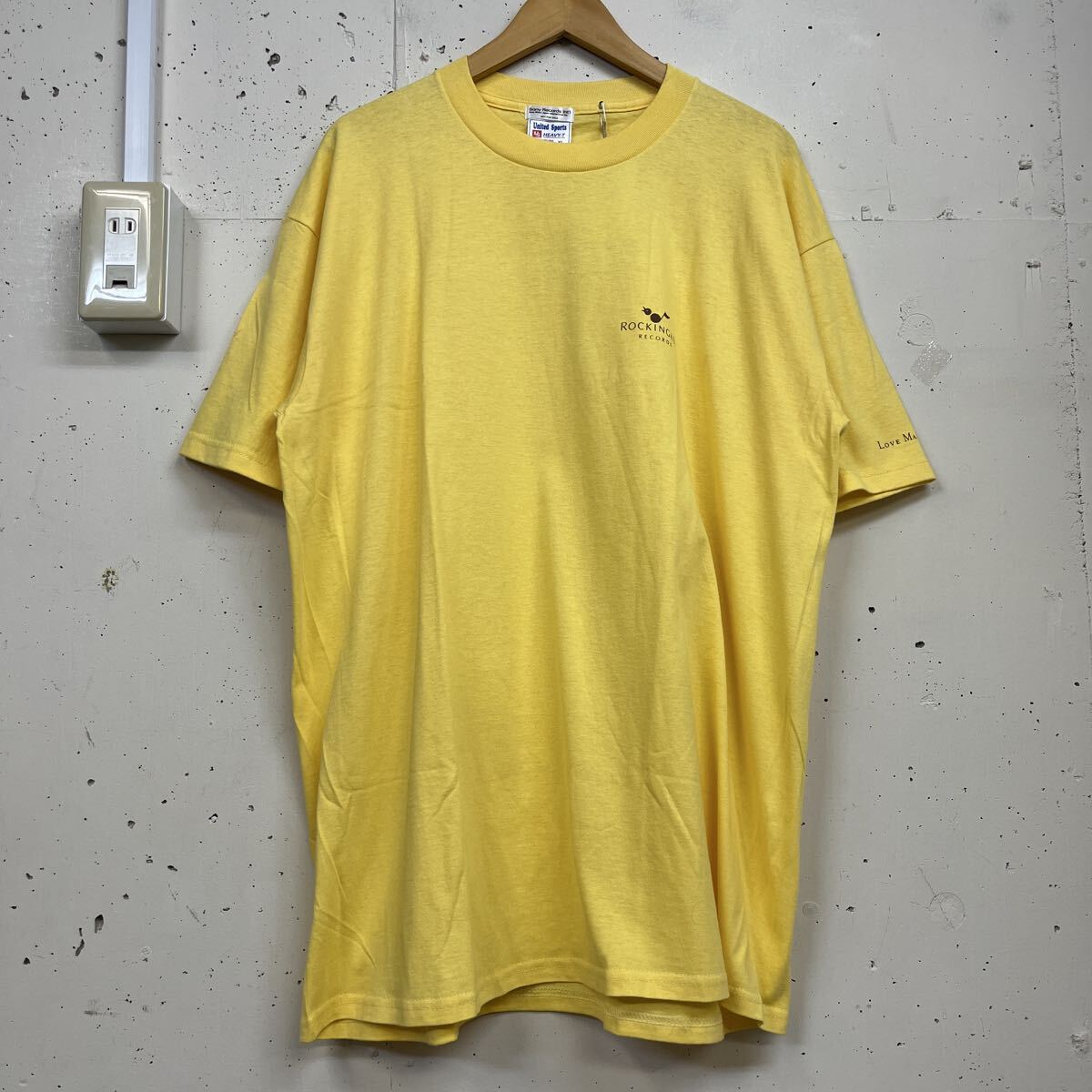 > ROCKINGALE RECORDS USA製 アメリカのレコード会社 半袖 tシャツ Tee イエロー 黄 サイズXL
