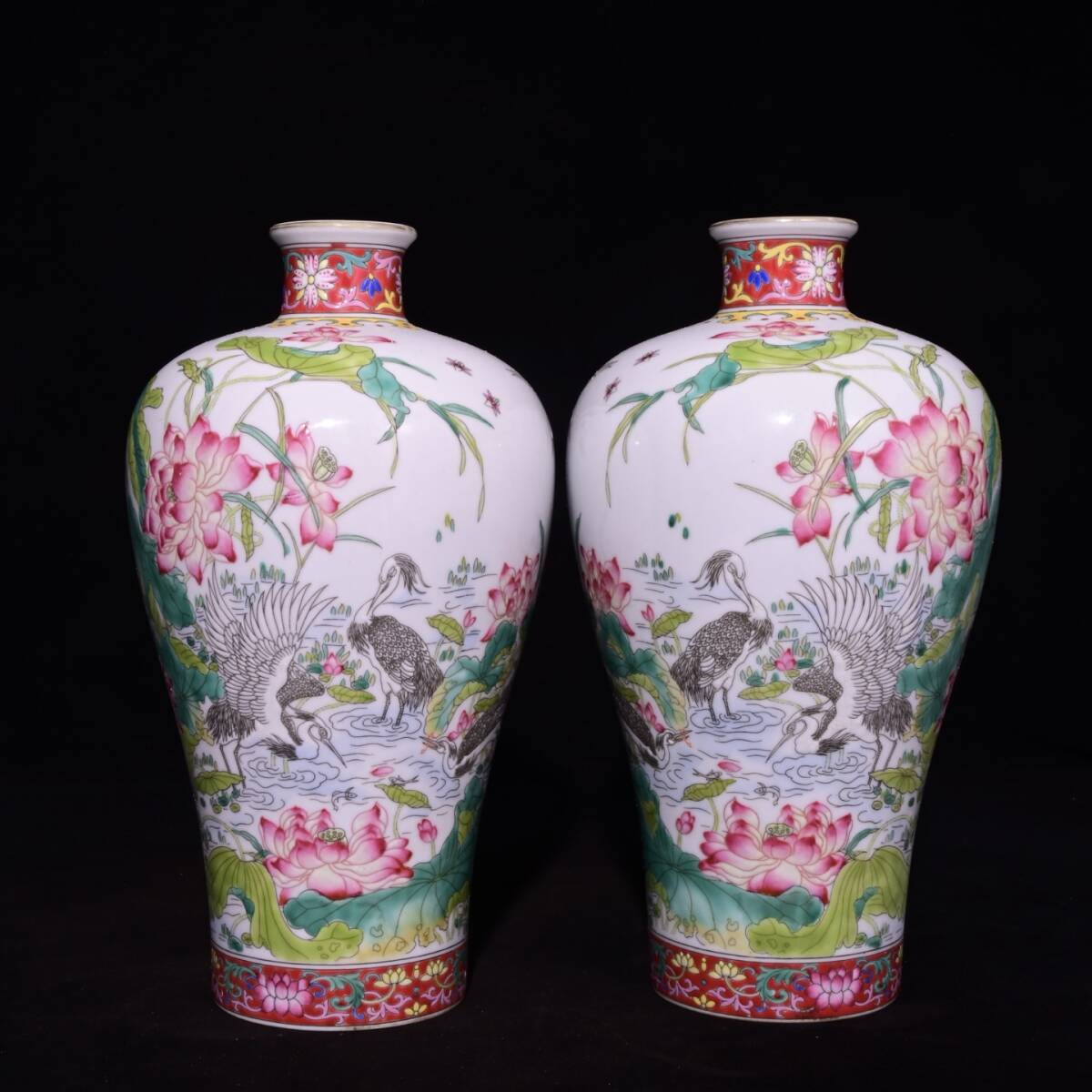 - A_YF0552【惠】人間国宝 中国骨董 陶芸 磁器【清雍正年制パステル一路登科紋梅瓶】工芸品 施釉陶 青花磁 陶芸 置物 收藏品