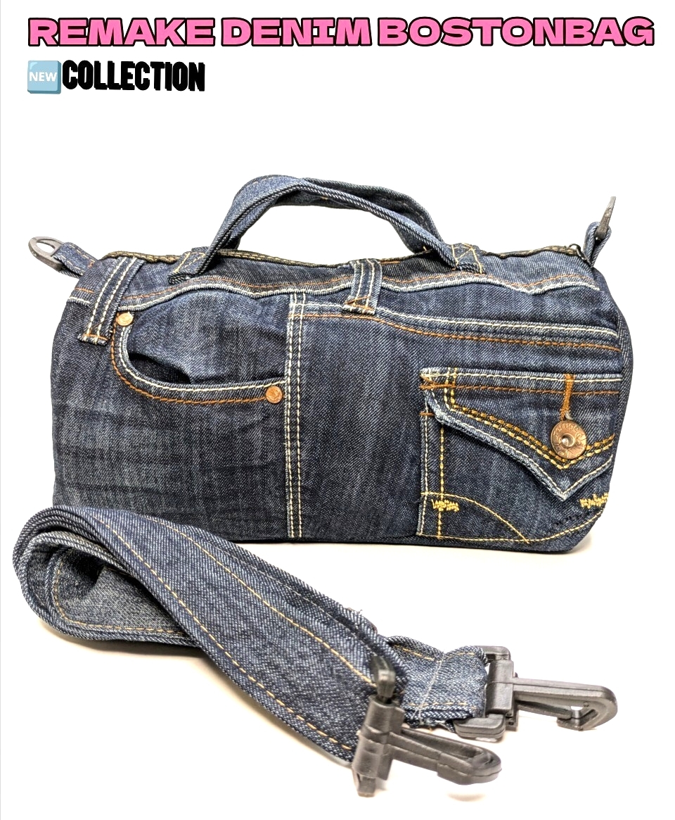 - 新品未使用 タウンボストンバッグ リメイク デニムmb-110【送料無料中】