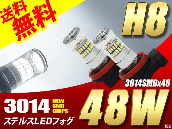 > H8 LED 48W フォグランプ /フォグライト 白 ホワイト 6000K ステルス バルブ 後付け ポン付 国内 点灯確認後出荷 ネコポス* 送料無料