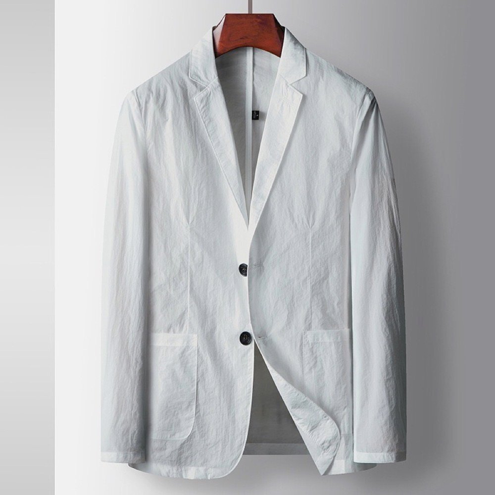 - テーラードジャケット 薄手 春夏 メンズ ブレザー ビジネススーツ サマージャケット 長袖 コート UVカット 日焼け防止 ホワイト L/175