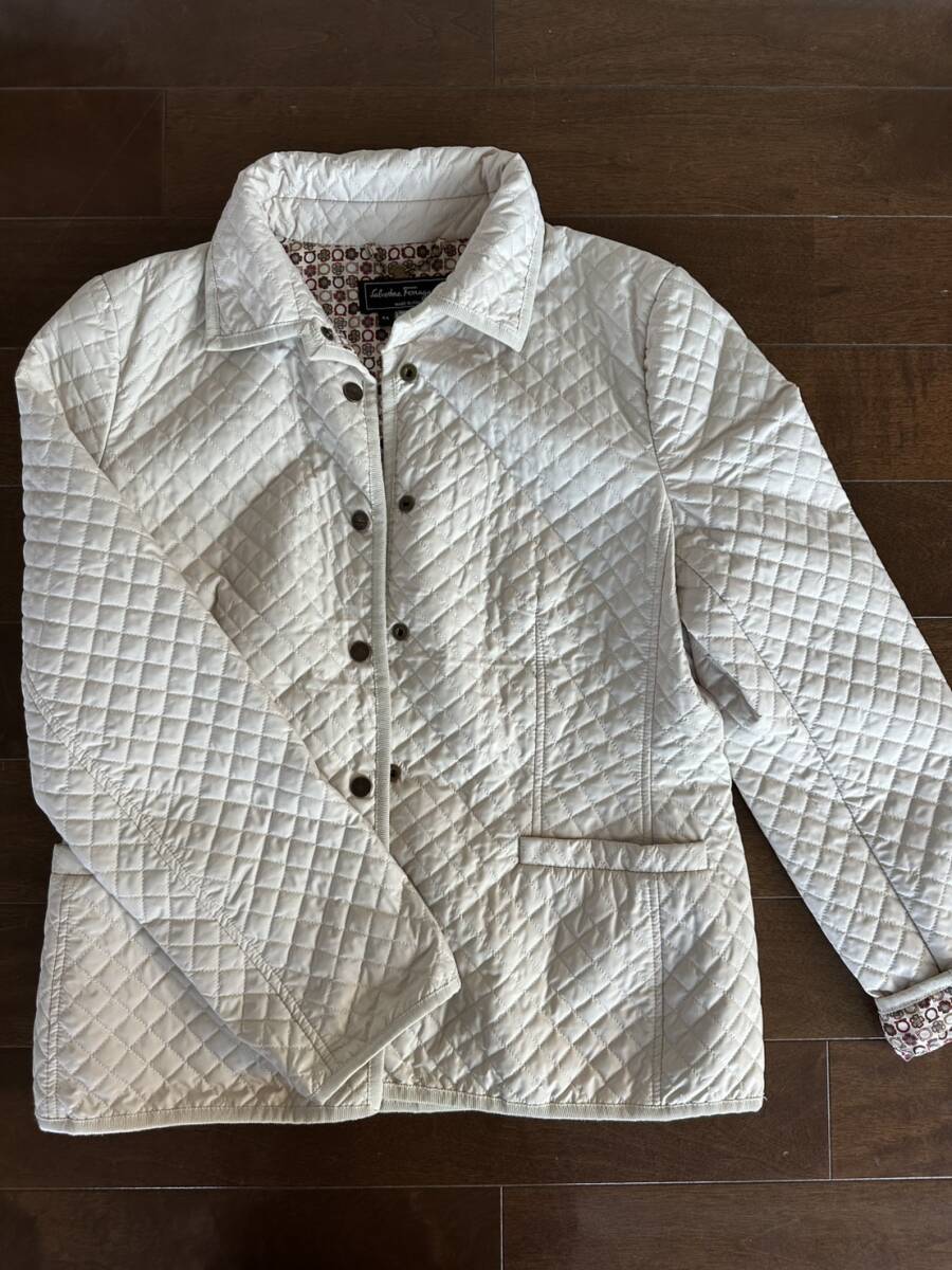 > フェラガモ Ferragamo キルティング ジャケット シングル ステンカラー 裏地総柄 ホワイト