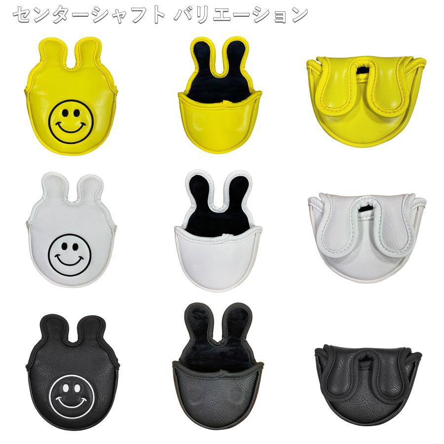 > ゴルフ ヘッドカバー パターカバー マレット マグネット開閉 センターシャフト用 小型タイプ スマイル 刺繍