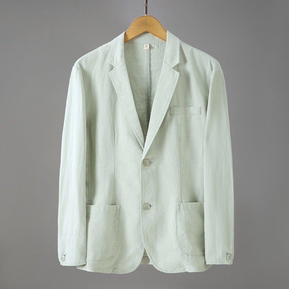 - テーラードジャケット メンズ サマージャケット リネンジャケット ブレザー 麻綿 ビジネススーツ 長袖 コート 紳士服 無地 グリーン L