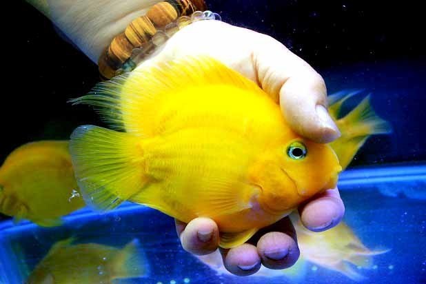 - 過背金に最適!激レアのハイ・イエローパッロト(オレンジではない)入荷!アロワナの目垂れ防止に!!ビックサイズ 13cm± 残り僅か
