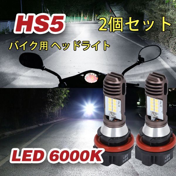 > HS5 スズキ ホンダ LED ヘッドライト バイク バルブ バイク 直流 交流 兼用 6000k Hi/Lo切替 N555 2個セット