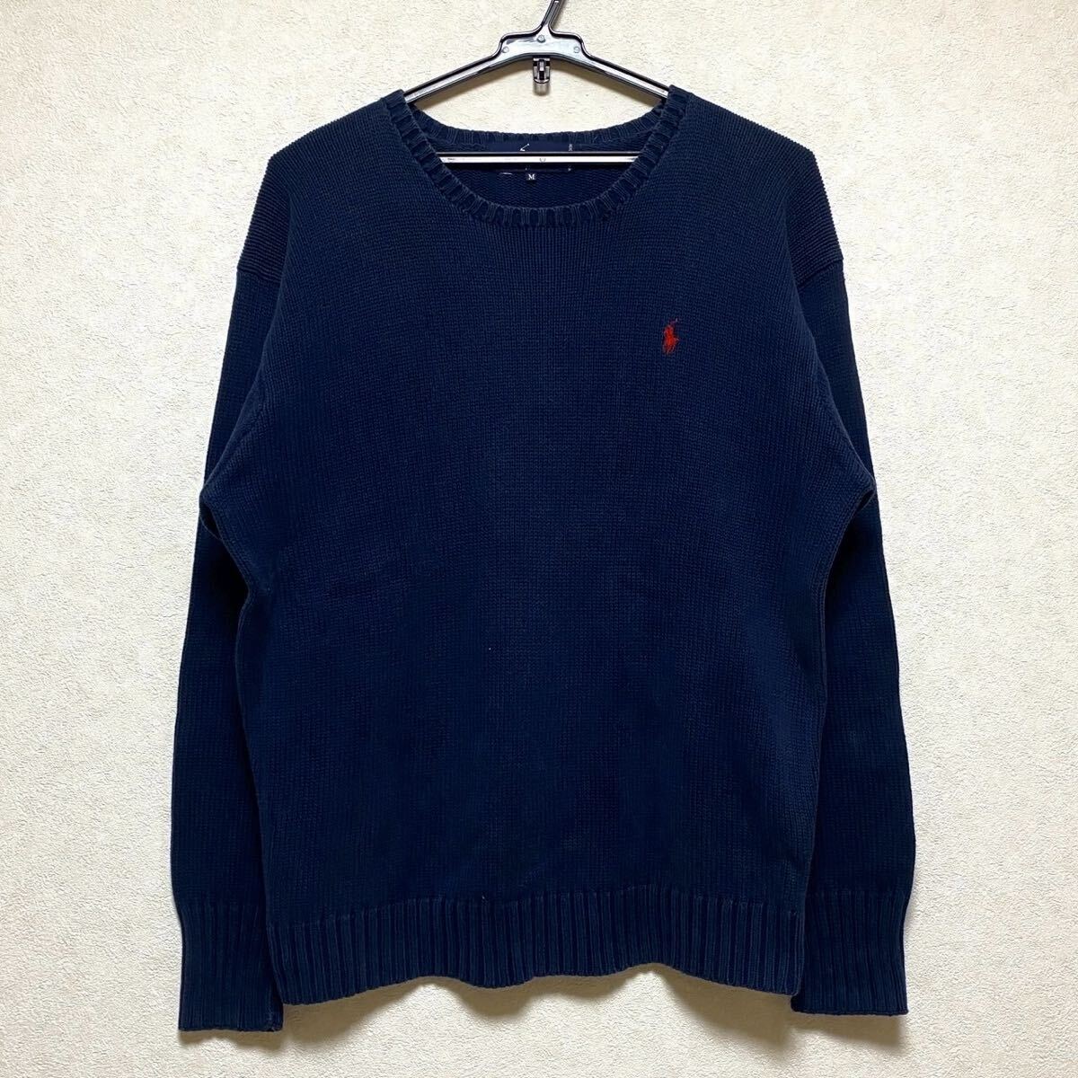 - 【人気】Ralph Lauren ラルフローレン レディース M ネイビー 紺 セーター 刺繍ロゴ ポニー 綿100 クルーネック 長袖 カジュアル スクール