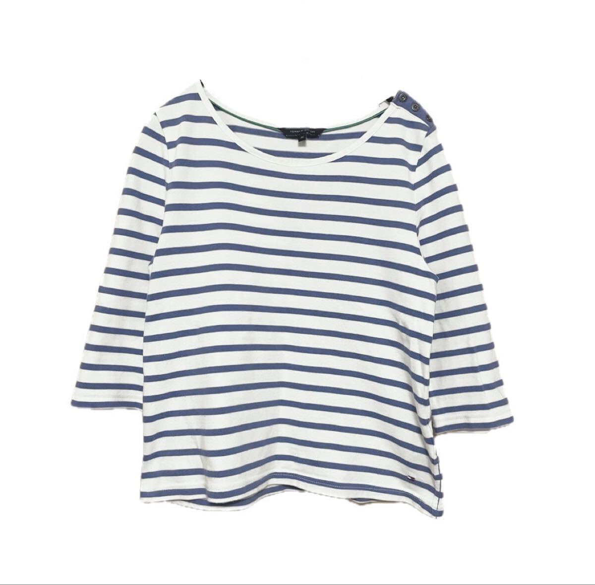 - TOMMYHILFIGER ボーダー カットソー Tシャツ 七分袖 クルーネック コットン トップス レディース トミーヒルフィガー ゴルフ バスクシャツ
