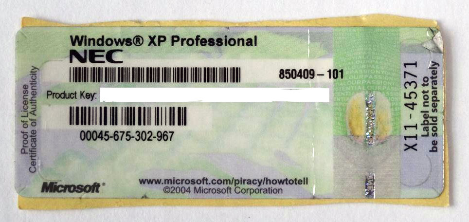 - ② NEC Windows XP Professional プロダクトキー シール