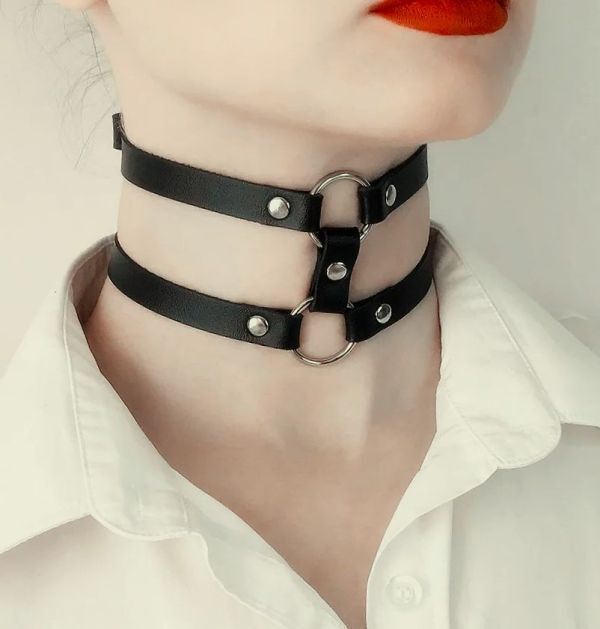 - Puレザー2列チョーカー 腕輪やスネにも パンク首輪スタッズネックレスゴスジュエリーメタルゴシックアクセサリーベルト★鄭11 [丨1[丨3