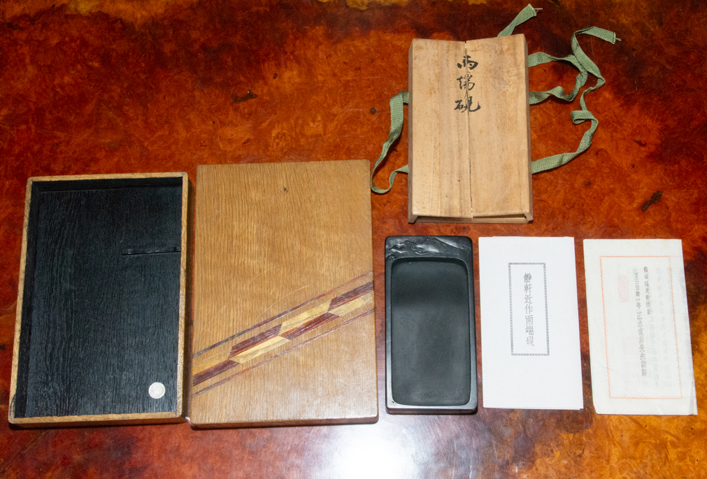 - 雨端硯 静軒 十一世 雨宮彌兵衛 共箱 国民学校硯箱 書道具 文房四宝 雨宮静軒