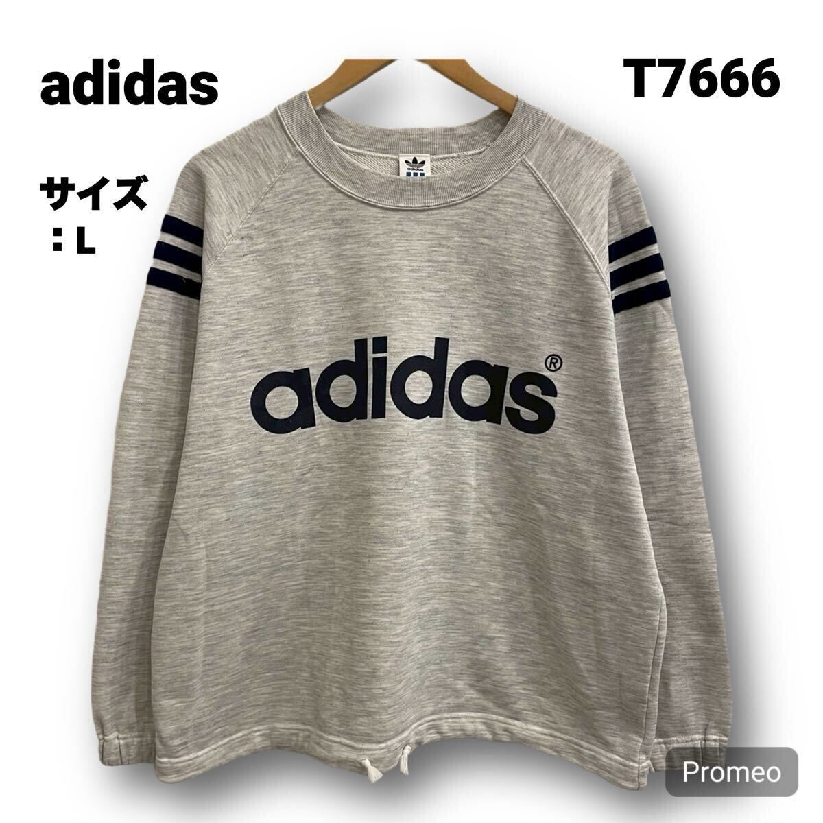 > 【T7666】 adidas アディダス スウェット トレーナー サイズL グレー 灰色 フロントプリント プリントロゴ メンズ トップス 最落なし 古着