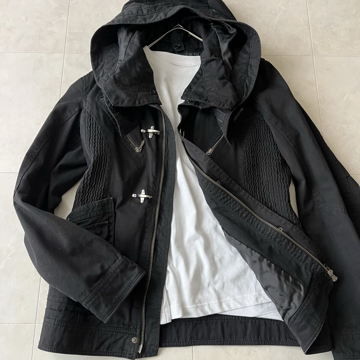 - 名作!ファイヤーマンジャケット サイズ48 【M〜L相当】NICOLE CLUB FOR MEN ニコルクラブフォーメン 黒 2wayフード付き脱着可能コットン