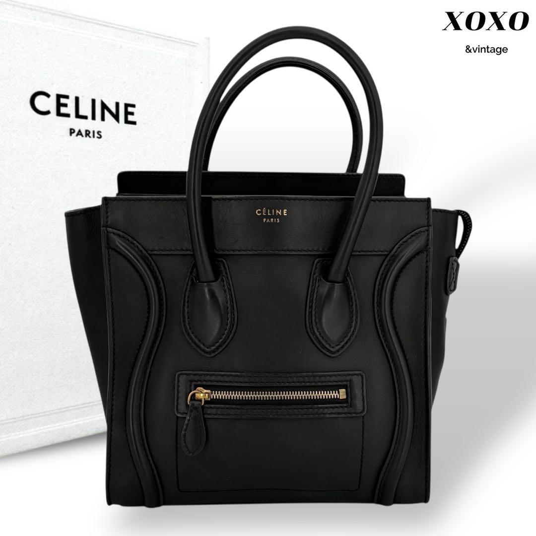 - [未使用級] セリーヌ ラゲージ マイクロショッパー ブラック ハンドバッグ CELINE 黒 カーフスキン レザー