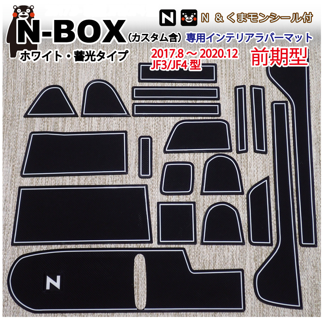 > (前期用)ホンダ新型N-BOX(JF3/JF4)専用 インテリアラバーマット(白色・ホワイト) くまモンシール付 ドアポケット コンソールフロアマット