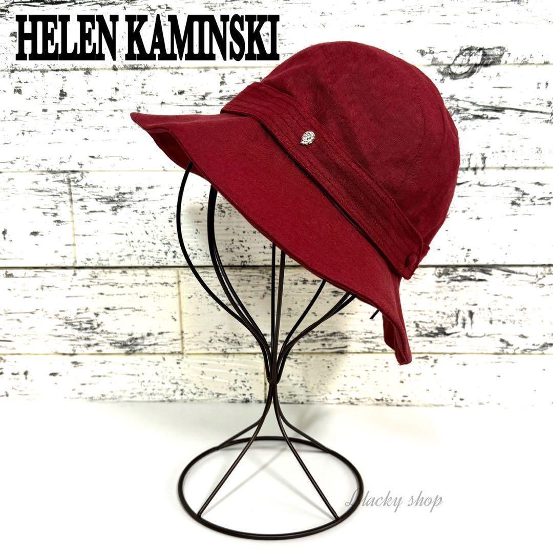 - HELEN KAMINSKI ヘレンカミンスキー AVERY バケット ハット 未使用 タグ付き レッド 麻 リネン 100% ロゴ チャーム