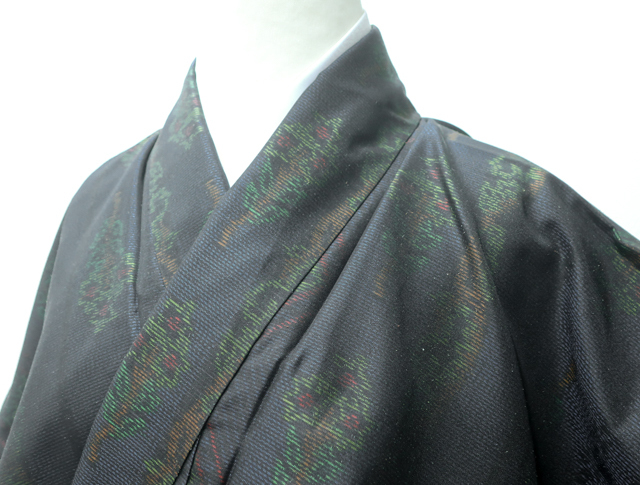 - 《京都一輝堂》【着物】 大島紬 縦縞に花菱文様 身丈約159cm 裄丈約64.5cm 24Z-99