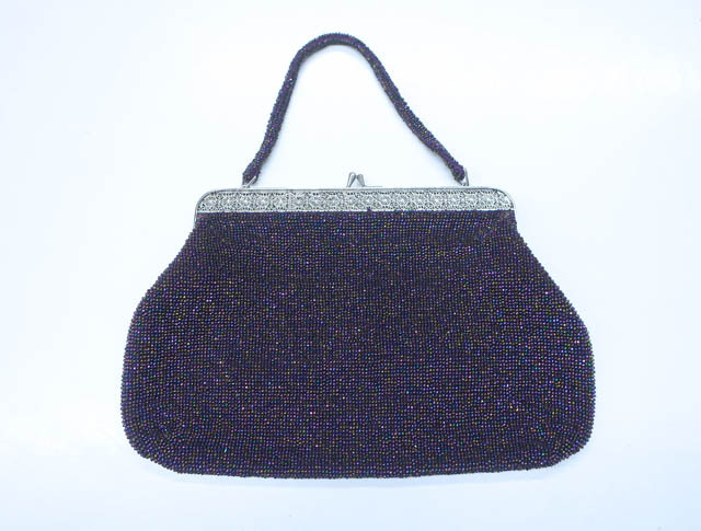 - 《京都一輝堂》【着物】 アンティーク 和装小物 ビーズバッグ 24W-1610