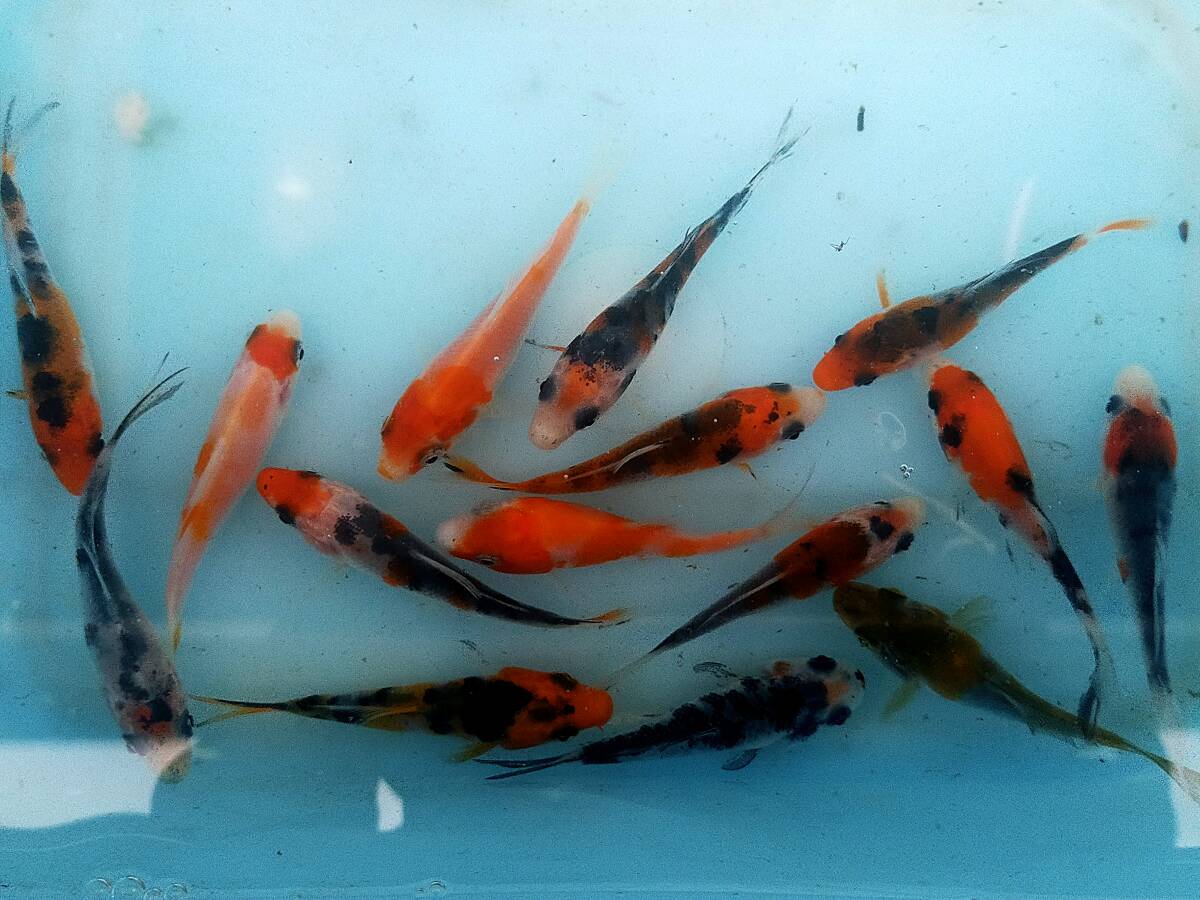 - 錦鯉の新仔15尾セットF 5~7センチ 紅白 三色 五色 白べっ甲他