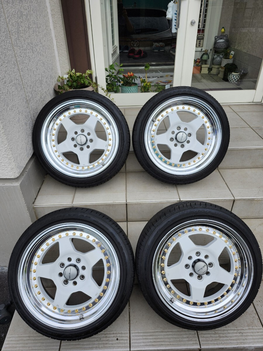 > WORK CR 01 7J オフセット 32 4 穴 100 pcd100 4穴 4本 165 50 15 4本 中古 オプション カラー ゴールドピアス