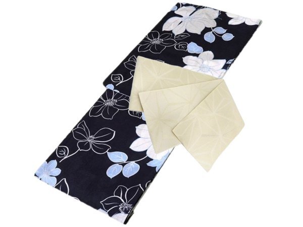 - 着物美人 浴衣 半幅帯 2点セット くすみ 変り織 女浴衣 浴衣女性 浴衣女の子 浴衣帯付 浴衣紺 女性 女の子 155-165【 紺 白 鉄線 】442335