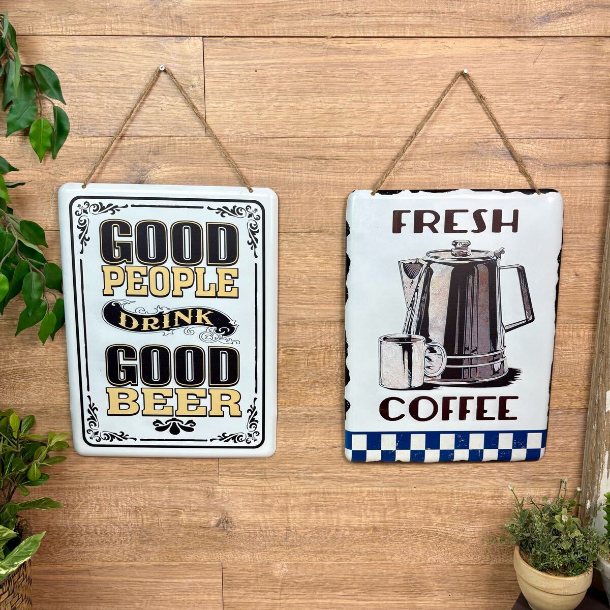 - インテリア雑貨ホーローパネル2点セット壁掛けサインボードカフェ看板アンティーク調 アメリカン雑貨 ブリキ看板