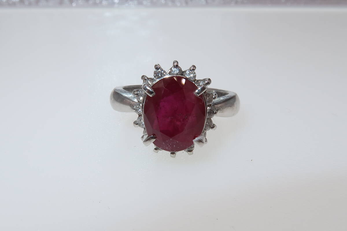 - ★☆Pt900 ルビー 3.25ct ダイヤモンド 0.29ct リング 10号☆★