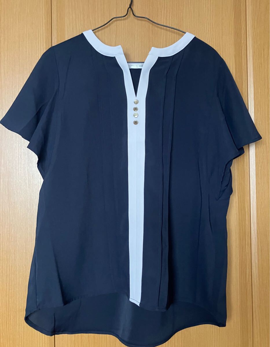 - 新品★ハニーズ Honeys 配色ピンタックブラウス 半袖★ネイビー★Lサイズ★上品★キレイ系★トップス
