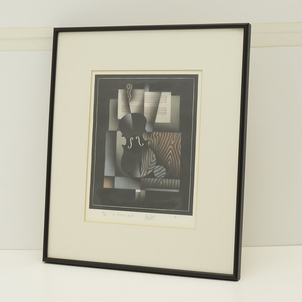 - ●525608 送料込み MARIO AVATI (マリオ・アバチ) 銅版画 「黒いバイオリン」 メゾチント 85部 直筆サイン 額装