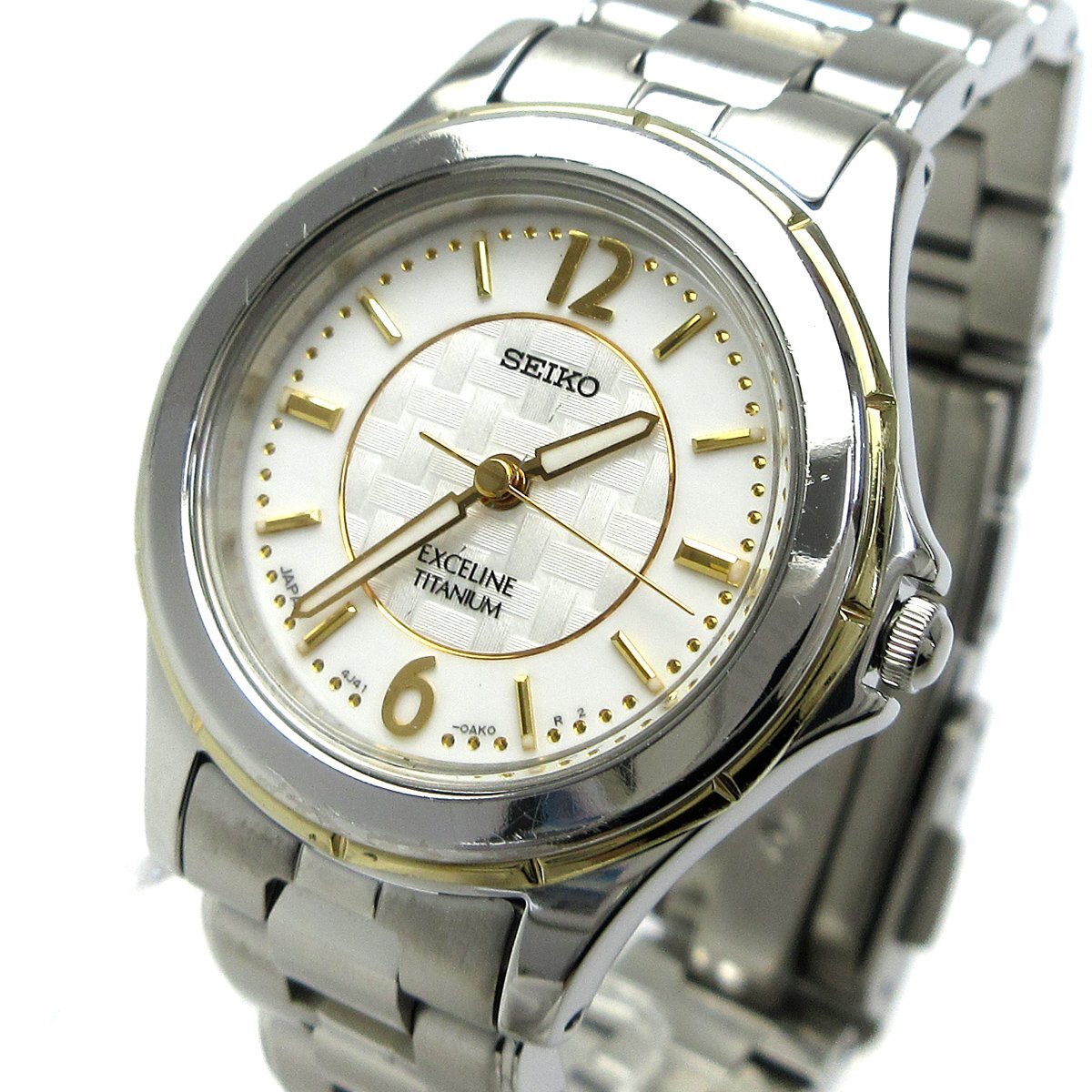 > セイコー エクセリーヌ レディース チタン 白文字盤 4J41-0AG0 時計 SEIKO EXCELINE 婦人 クォーツ 稼動品