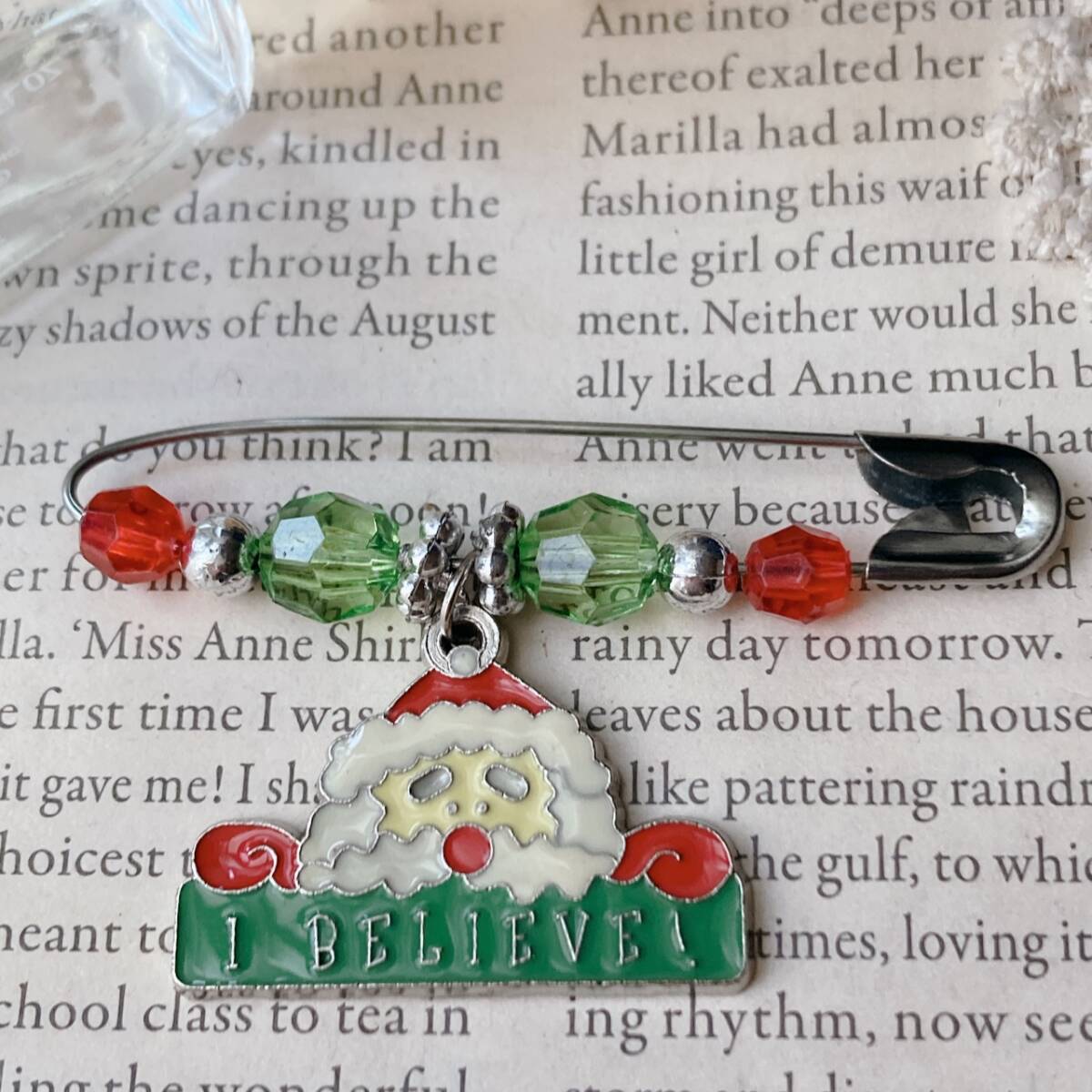 - ヴィンテージピンブローチ 安全ピンブローチ クリスマス サンタクロース シルバートーン ビーズ☆Vintage jewelry accessoriesF0291