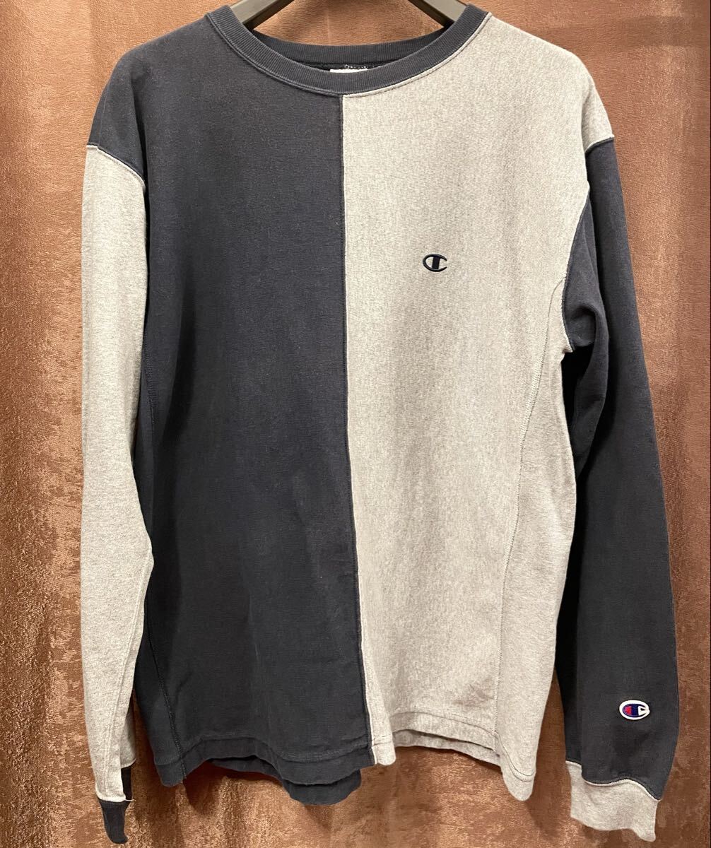 - Champion REVERSE WEAVE ツートン切り替え長袖カットソー ネイビー×グレー Mサイズ チャンピオン リバースウィーブ