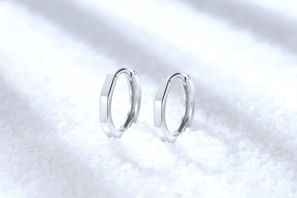 - シルバー925 プラチナ仕上げ 六角形シンプルフープピアス 直径15mm/幅2mm