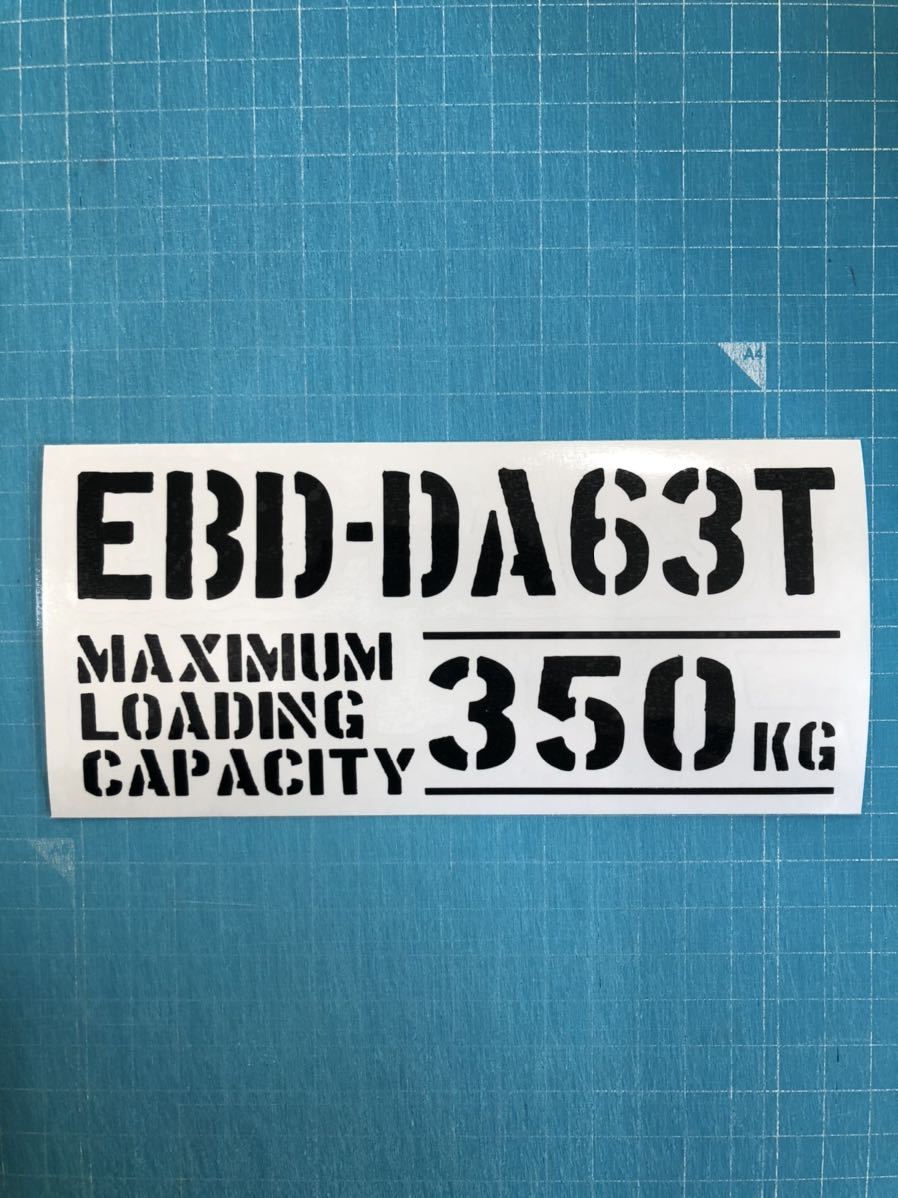 > EBD-DA63T 最大積載量 350kg ステッカー 黒色 世田谷ベース スズキ キャリイ 軽バン 軽トラ