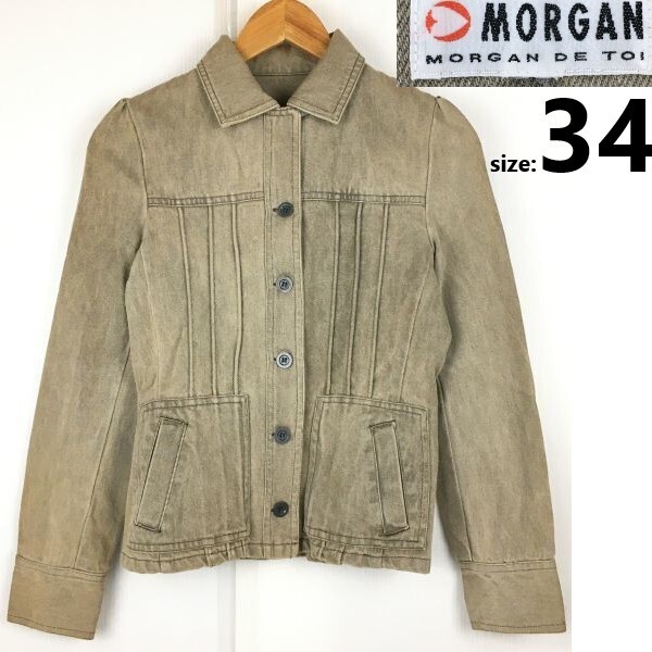 > MORGAN/モルガン デニムブジャケット/Gジャン size:34 レディースS程度 薄茶/ブラウンベージュ アウター/ブルゾン 管NO.TA18-16