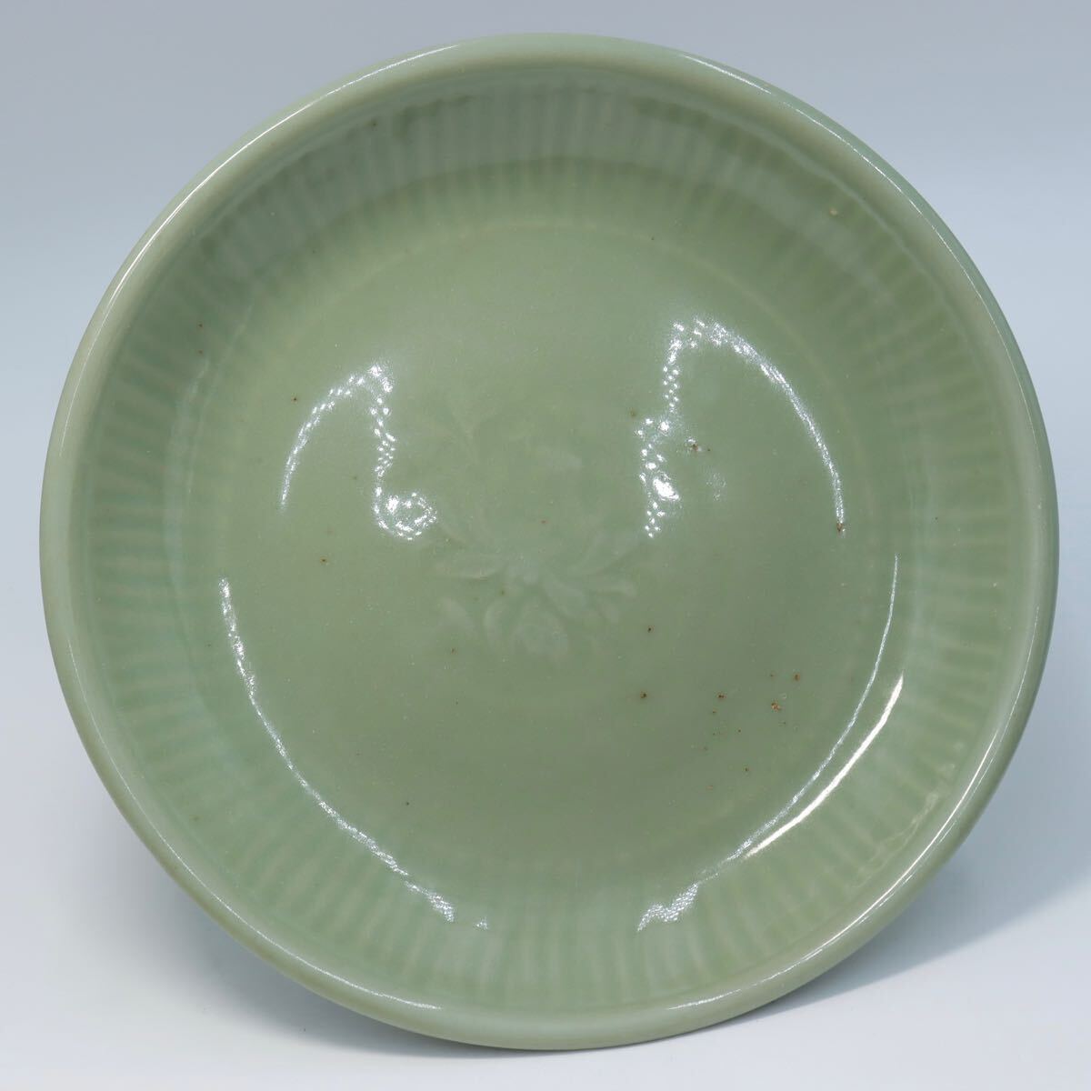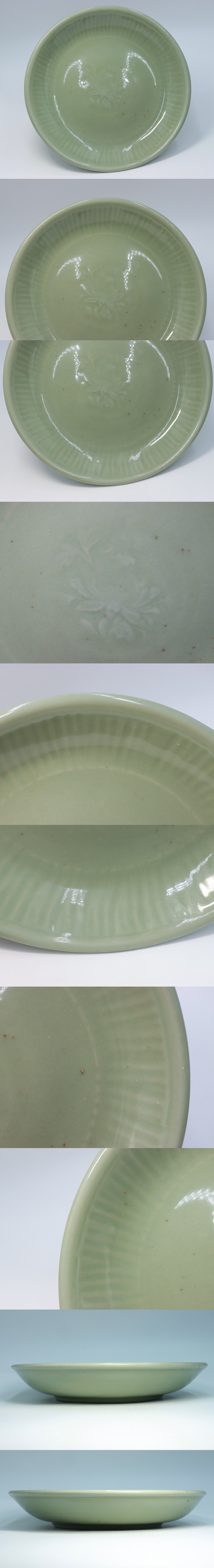 - 明時代 龍泉窯 青磁花卉紋大皿 唐物 中国美術 a101311