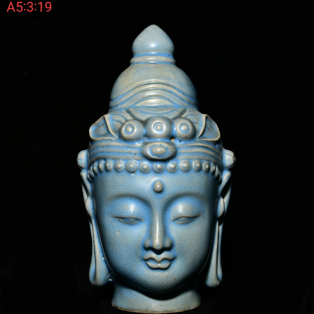 - 宋代風 古陶磁器 仏教古美術 汝窯 仏頭 仏首 仏像 佛像 観音 菩薩像 禅意置物 東洋彫刻 骨董品 旧家蔵出し 唐物 中国古玩 古美術品