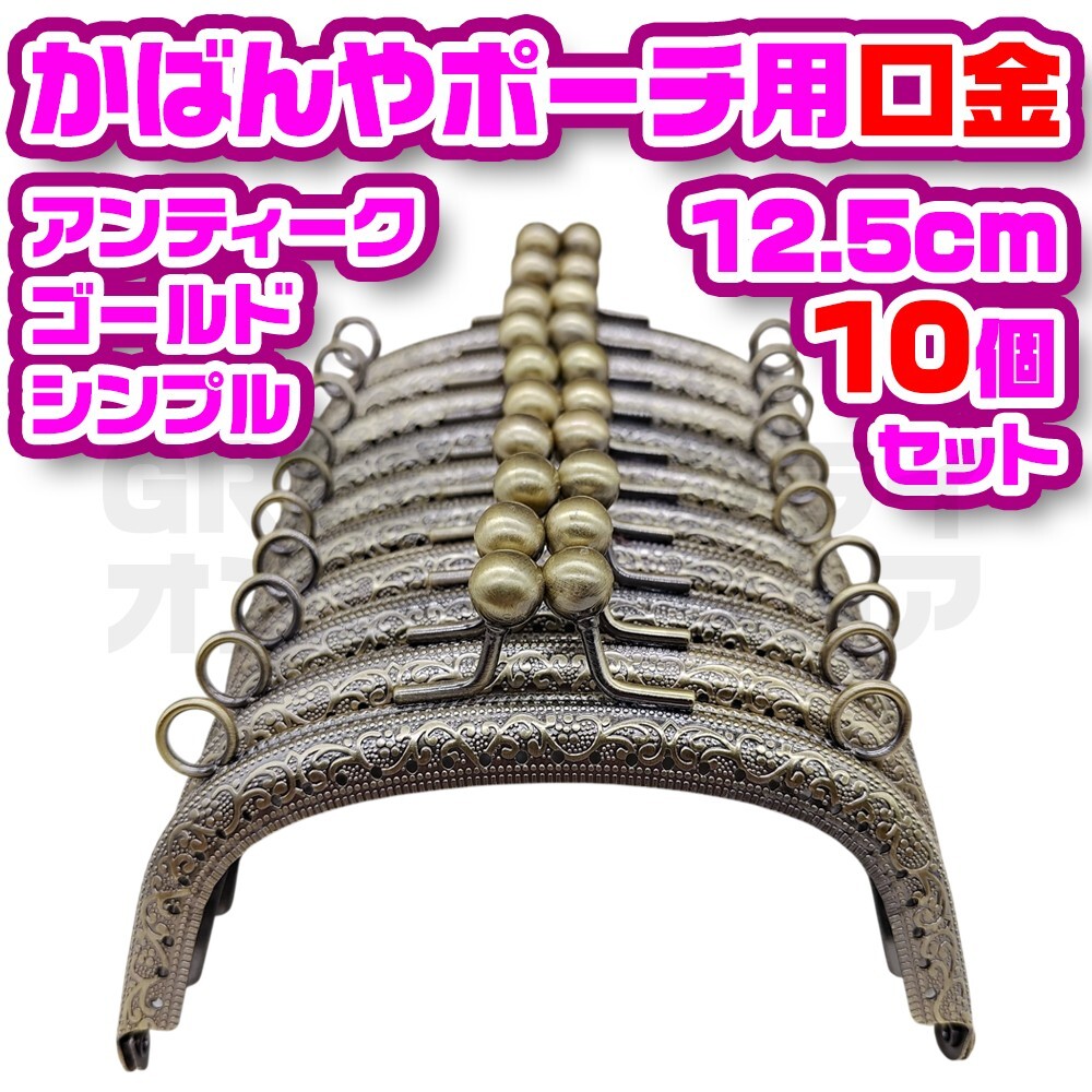 - がま口 口金 シンプル 1 丸型 アンティークゴールド 金 12.5cm 10個