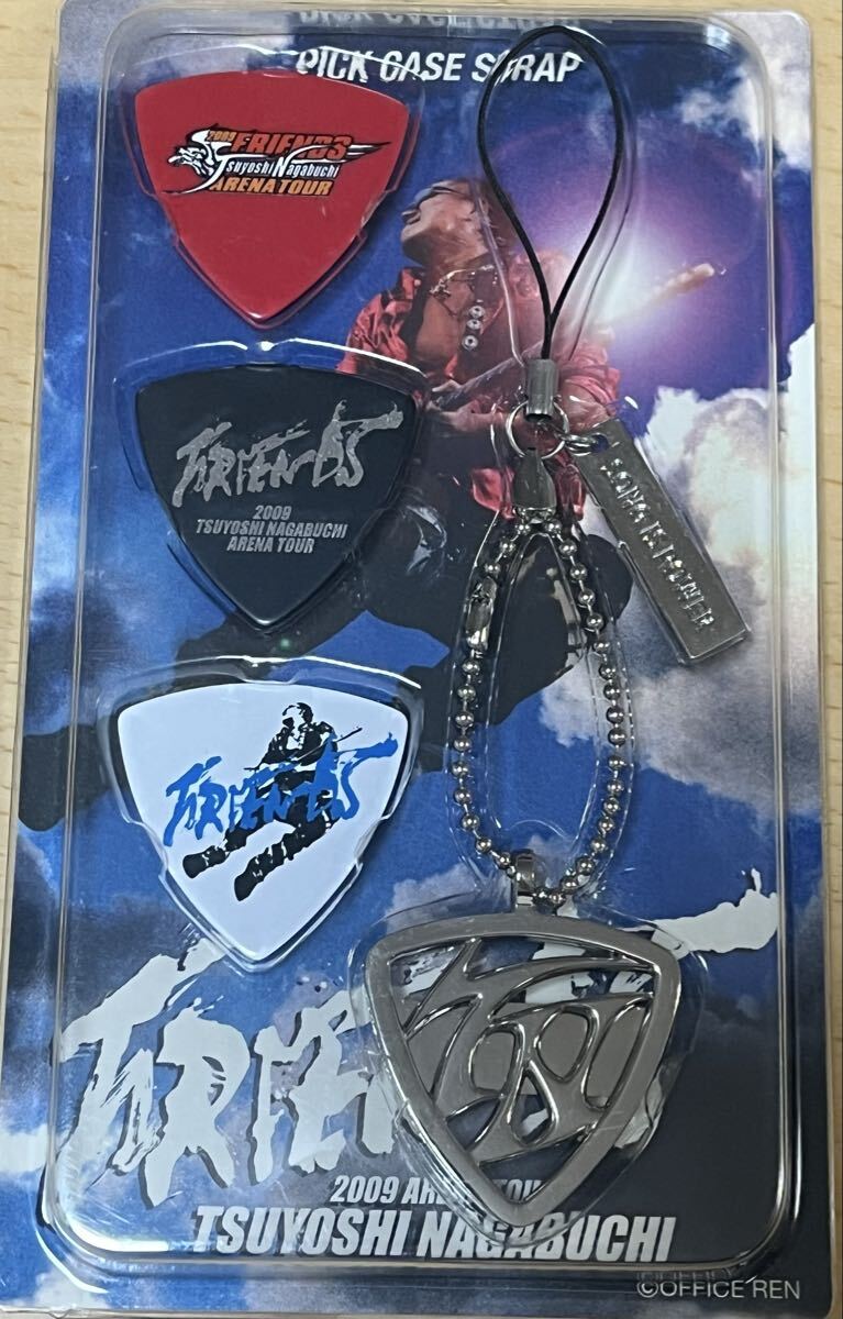 > 長渕剛2009年アリーナツアー「FRIENDS」「ピックケースストラップ」ピックを収納できる金属製のホルダーと、3枚のギターピック新品未使用