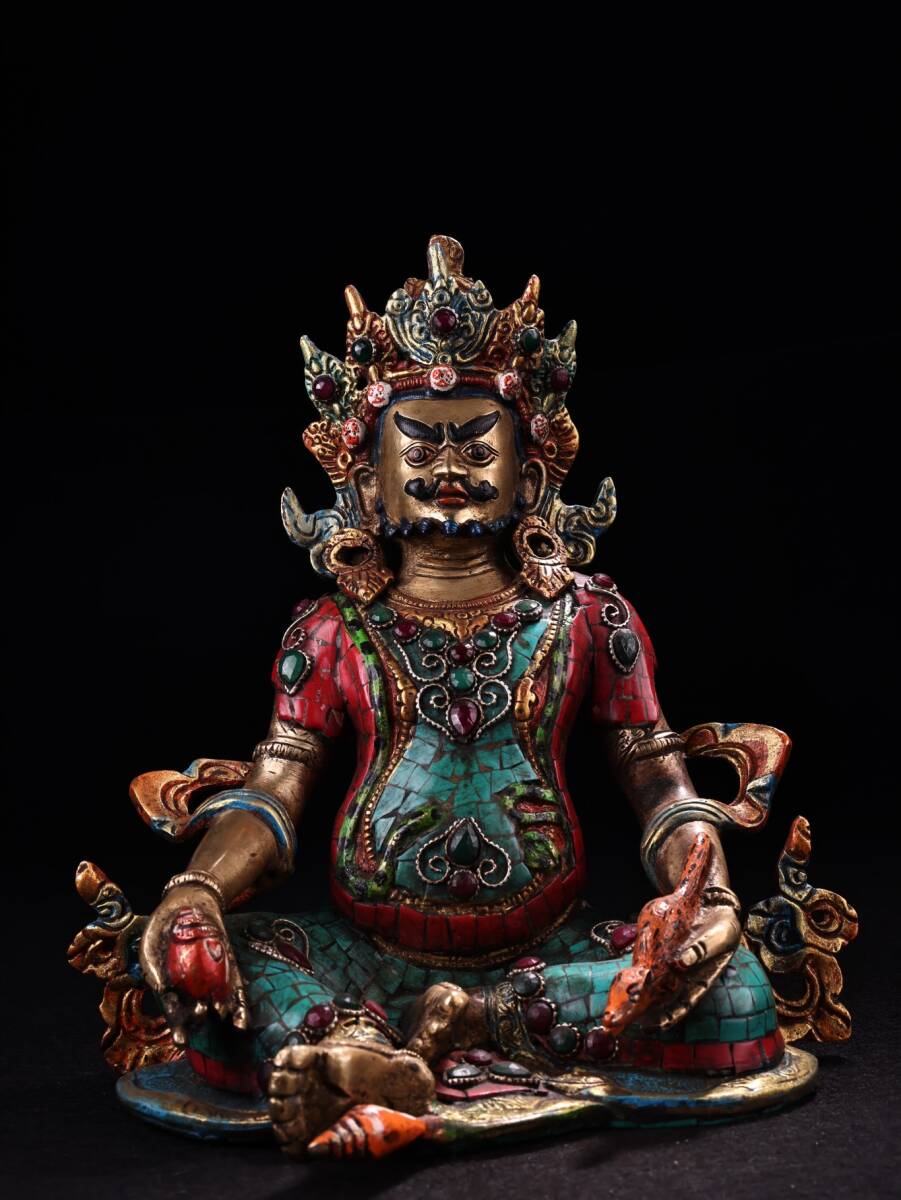 - ▽鴻▽ 銅製 彩繪 寶石嵌 密宗仏教 黄財神 仏像 宗教 置物 賞物 古賞物 古董品 時代物 稀少珍品 中国古玩 中国古美術