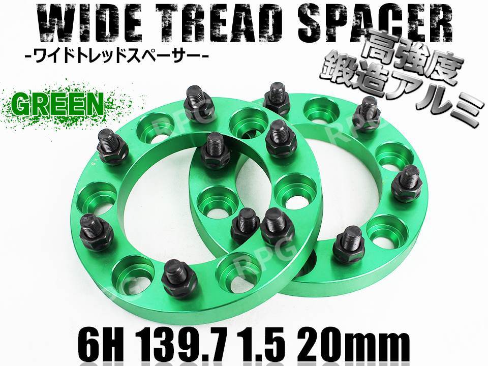 - ハイエース 200系 ワイトレ 6H 2枚組 PCD139.7-1.5 20mm ワイドトレッドスペーサー (緑)