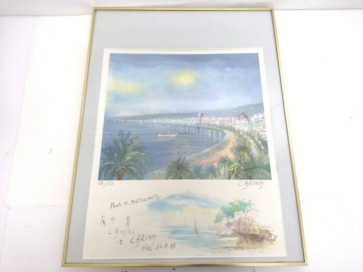 > 【模写】CARINAサイン入り エディション 18/50 リトグラフ/額約67×51×3cm/額装/絵画/海辺/風景画/壁掛け/壁飾り/インテリア/LHP60-14