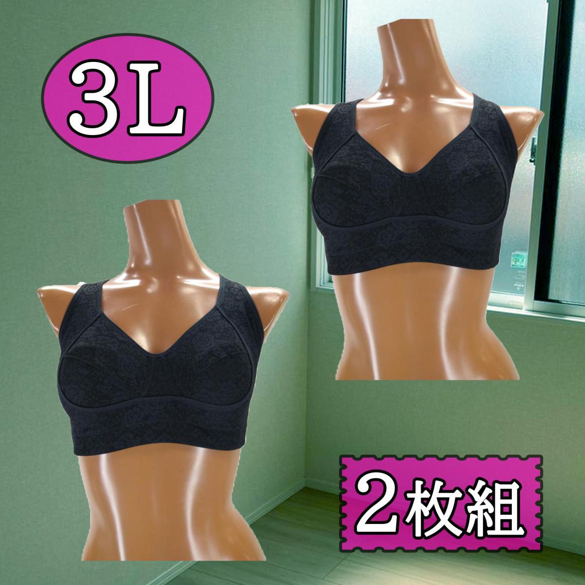 - SI1026-2◆ 新品 ブラジャー 2P ハーフトップ 補正 バッククロス バストアップ 外パネル 花柄レース 3Lサイズ 黒 ブラック 送料350円