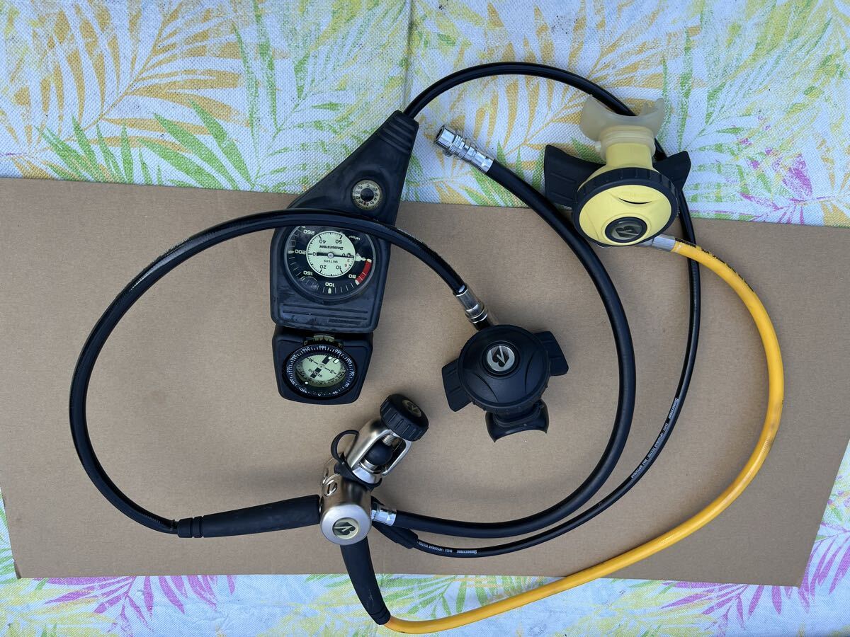 - ダイビング機材 レギュレータ― ブリジストン ゲージ ホース 他 レギュレーターセット ダイビング用品