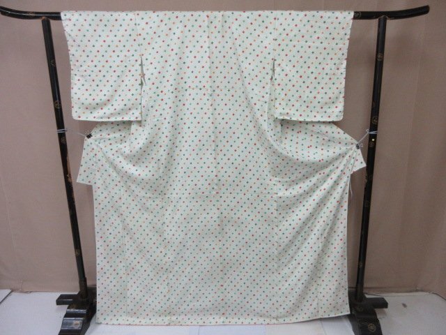 - 1円 良品 小紋 正絹 着物 縮緬 和服 和服 菱 点 カラフル お洒落 高級 袷 身丈158cm 裄65cm【夢職】★
